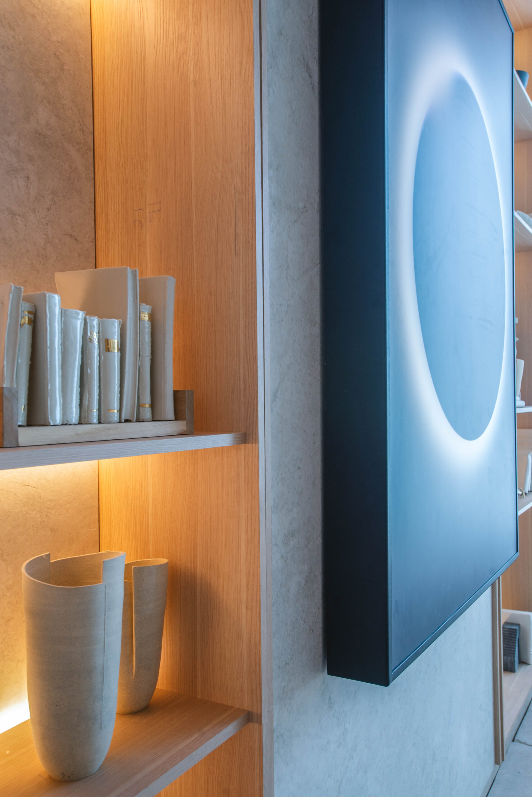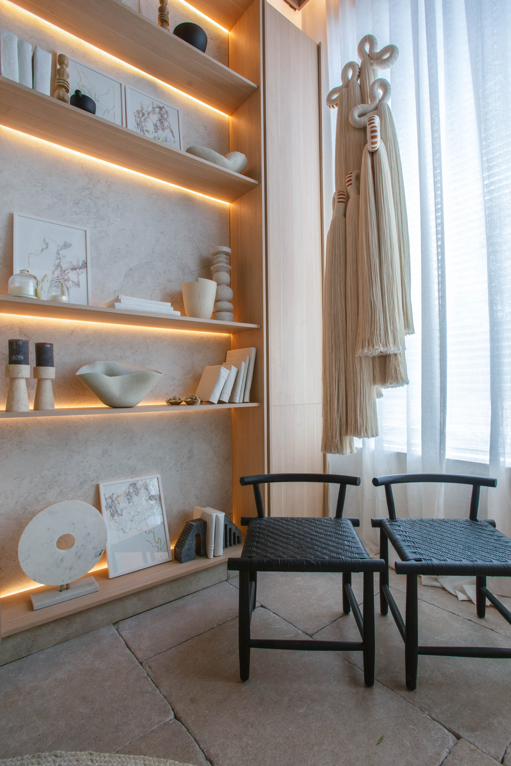legí Neolith porque evocaban la tranquilidad que buscaba para este ambiente. La placa de Neolith utilizada, White Sands, aporta una textura muy natural y un color blanco pacífico, perfecto para reforzar la atmósfera silenciosa y luminosa del lugar.Además, la experiencia de trabajar con Casa Diseño fue excelente: desde el apoyo en el diseño, la resolución de todas las soluciones técnicas del mobiliario en tiempo récord, hasta la instalación impecable. Cada detalle y cada material aportaron de manera fundamental a lograr este espacio pacífico y armónico.